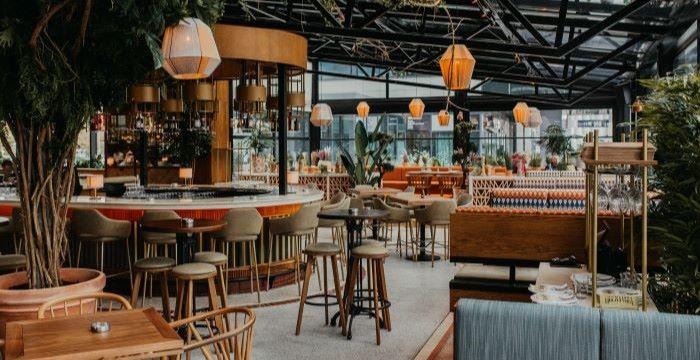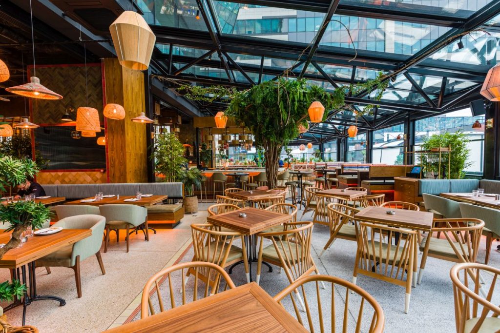 Zbog staklenog plafona, dobar deo restorana podseća na ogromnu baštu zbog koje stičete utisak da ste na otvorenom, iako ste ušuškani u toplom ambijentu sa mnoštvom različitih udobnih restoranskih stolova, separea i visokih sedenja.