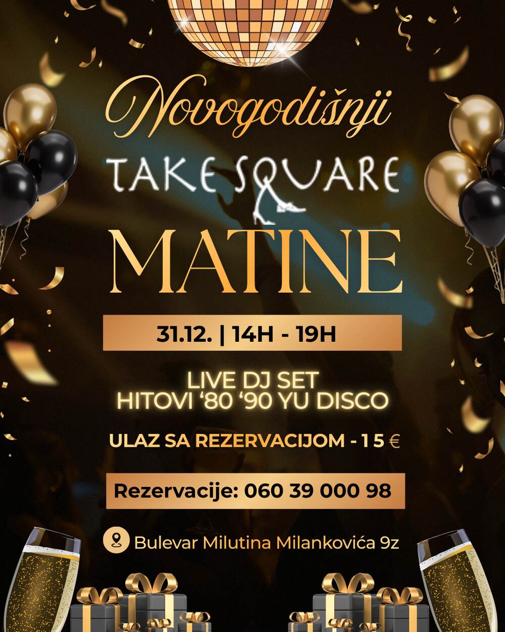 Restoran Take Square matine Nova godina 2026 namenjen je onima koji znaju da uživaju u praznicima na pravi način - uz pozitivnu energiju, prijatno okruženje i najbolju ekipu u gradu.